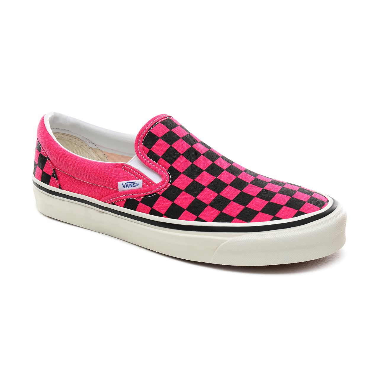 Vans Anaheim Factory Classic Slip-On 98 DX Shoes - Mens Womens (Anaheim Factory) Og Pink Neon/Checkerboard VN0A3JEXV9N Sneakers