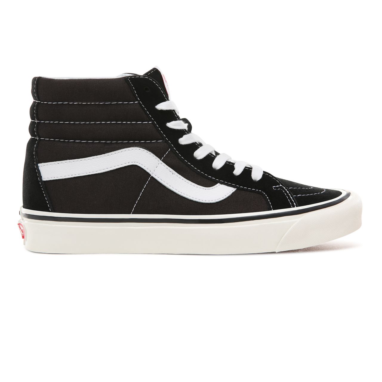 The Anaheim Factory Sk8-Hi 38 DX pays tribute to our first Vans factory in Anaheim, California by borrowing details from the original Sk8-Hi and offering modernized comfort with upgraded OrthoLite sockliners. The Anaheim Factory Sk8-Hi 38 DX also includes throwback details like the original style number and color palette or reissued prints, higher glossed foxing tape, cotton laces, original drill lining weight, and suede and textile uppers to complete the look.