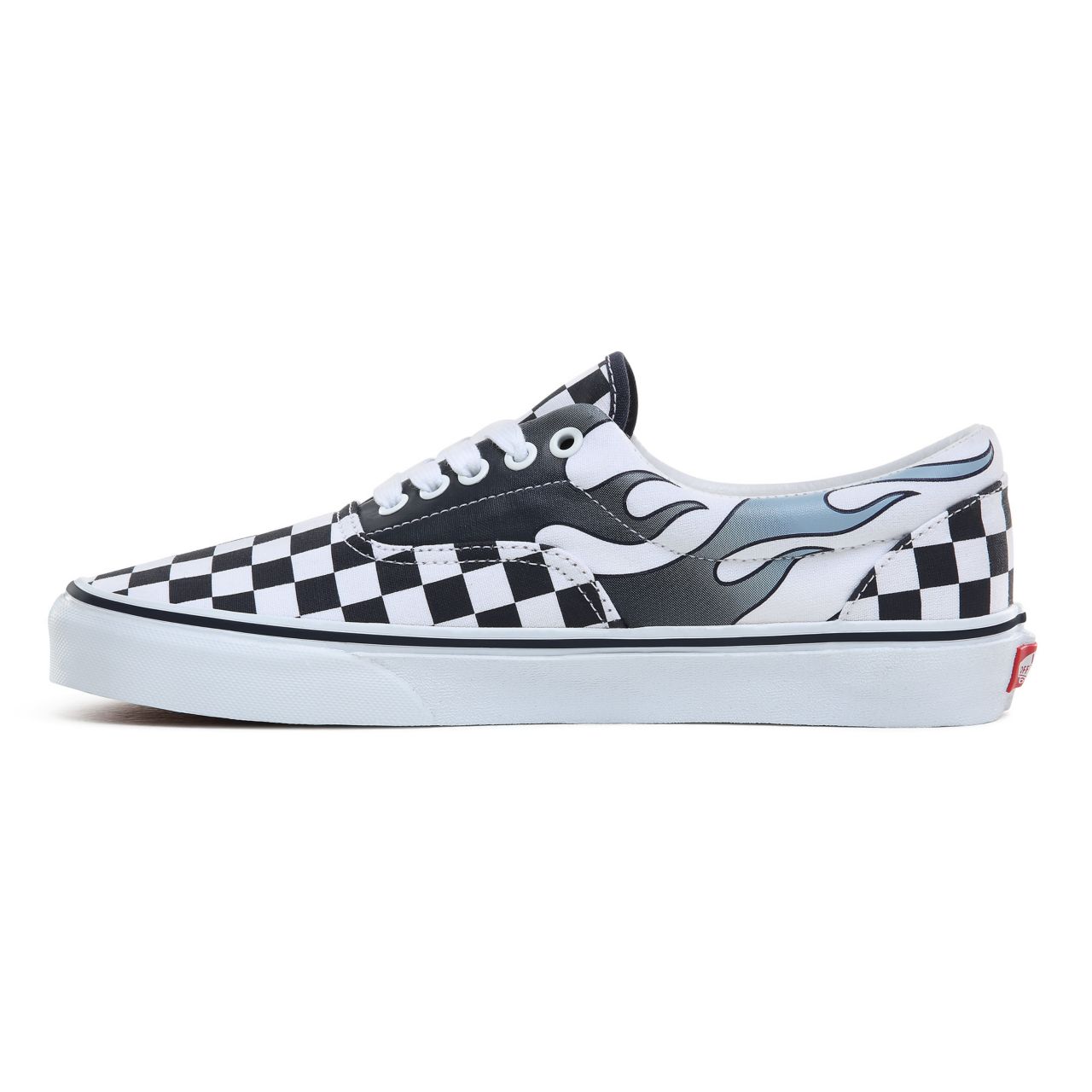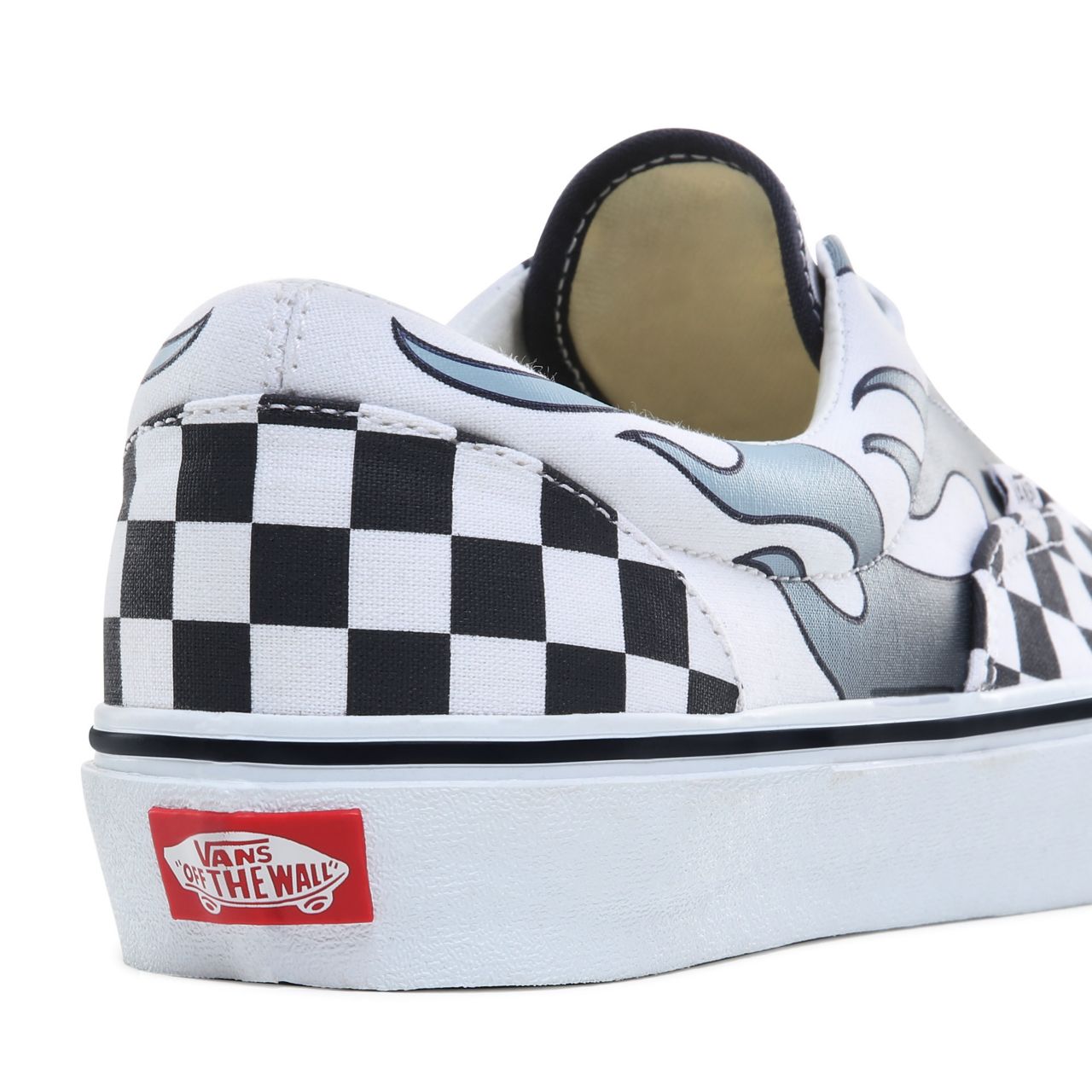 The Vans Checkerboard Flame Classic is a low top, lace-up shoe with padded collars for comfort and a waffle outsole for grip. It features a checkerboard and flame pattern.