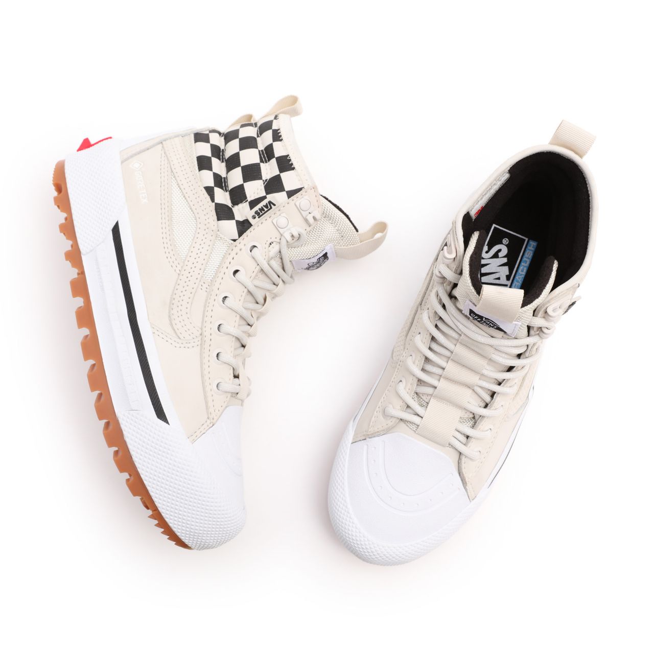 Made for the elements with our most advanced and purpose-built all-weather technology, the new Checkerboard Sk8-Hi GORE-TEX MTE-3 packs over 25 years of Vans snowboard boot history and technology into a timeless, trusted style. The MTE-3 feature set includes the MTE-3 outsole built with All-Trac™, an MTE exclusive all-weather rubber compound that offers significantly improved traction with improved toe picking and dynamic lug tread. The MTE-3 GORE-TEX waterproof package will keep you dry, a powerful 3M Thinsulate™ insulation package for cold weather thermoregulation will keep you warm, and a dual-density molded UltraCush™ sockliner with an OrthoLite® topsheet will keep you comfortable no matter what the day has in store. Plus, the durable water repellent-treated leather and checkerboard textile uppers bring an iconic Vans aesthetic to this uncompromising cold weather comfort.