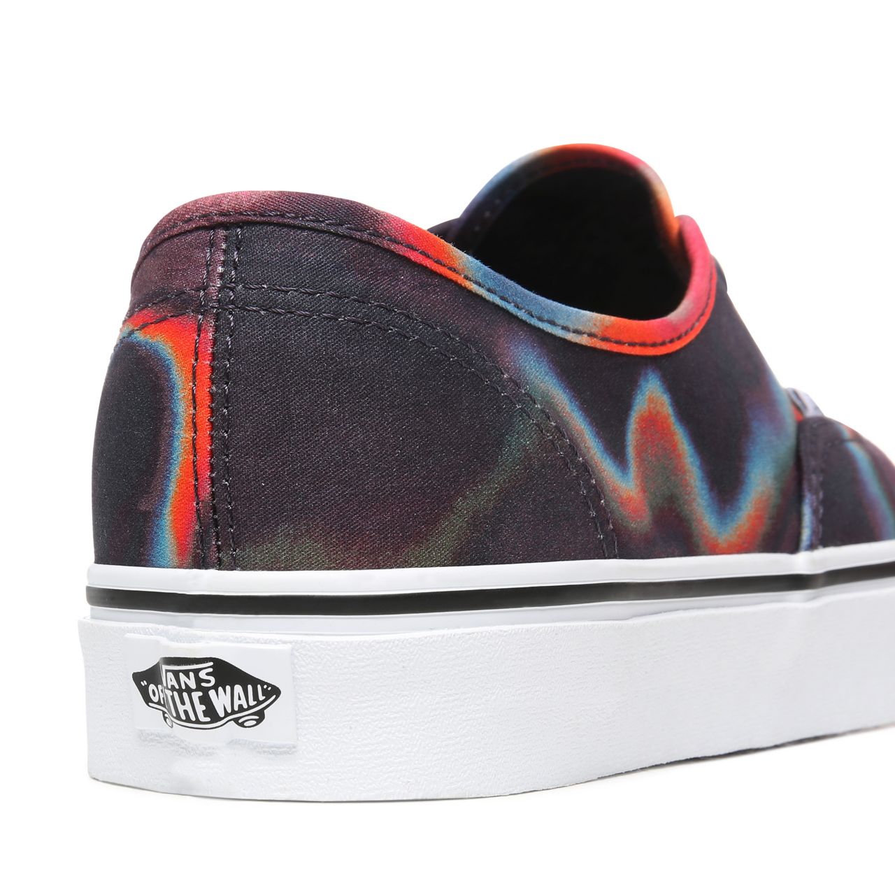 The Dark Aura Authentic combines the original and now iconic Vans low top style with sturdy textile uppers, an allover print, metal eyelets, and signature rubber waffle outsoles.