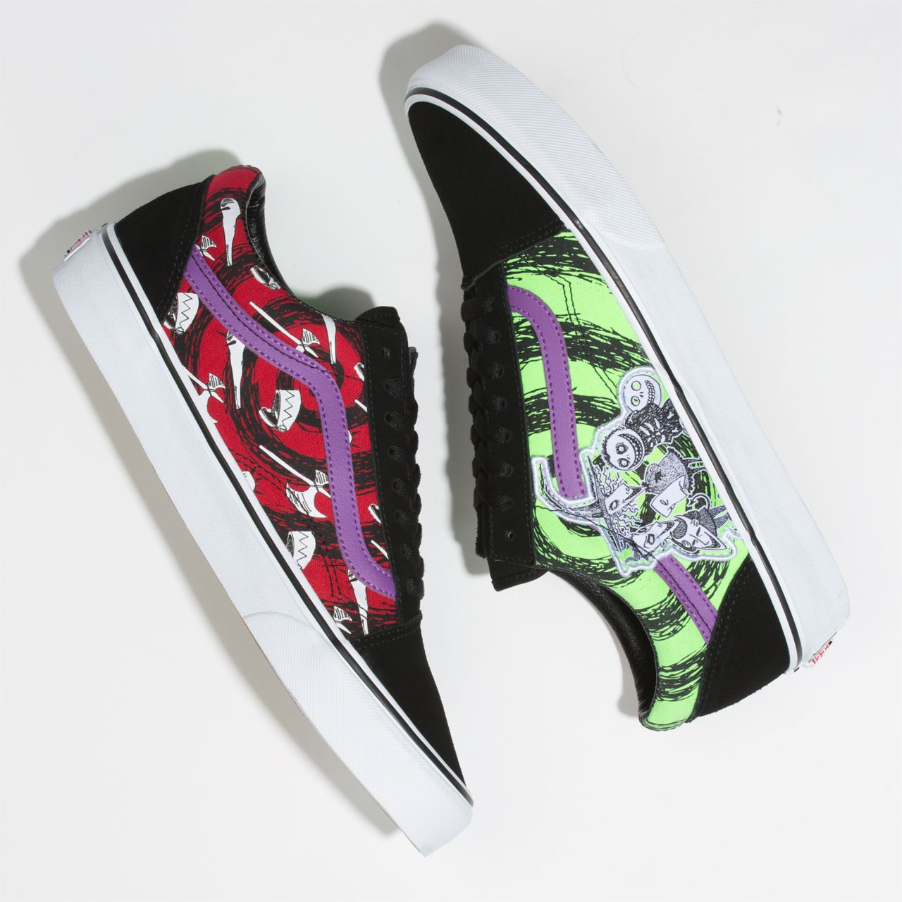 Step into imagination with the characters and the creative spirit of The Nightmare Before Christmas in this new Off The Wall collection. Celebrating Tim Burton’s iconic film, the Nightmare Before Christmas Old Skool combines the Vans classic low top skate shoe with sturdy canvas and suede uppers featuring print details inspired by Lock, Shock, and Barrel. It also includes metal eyelets, padded collars for support and flexibility, and signature rubber waffle outsoles.