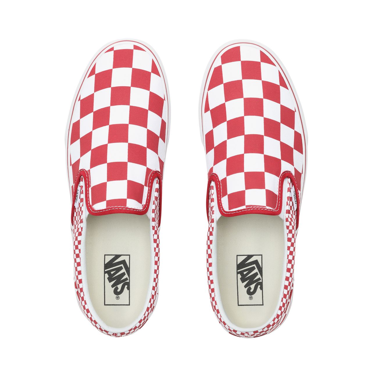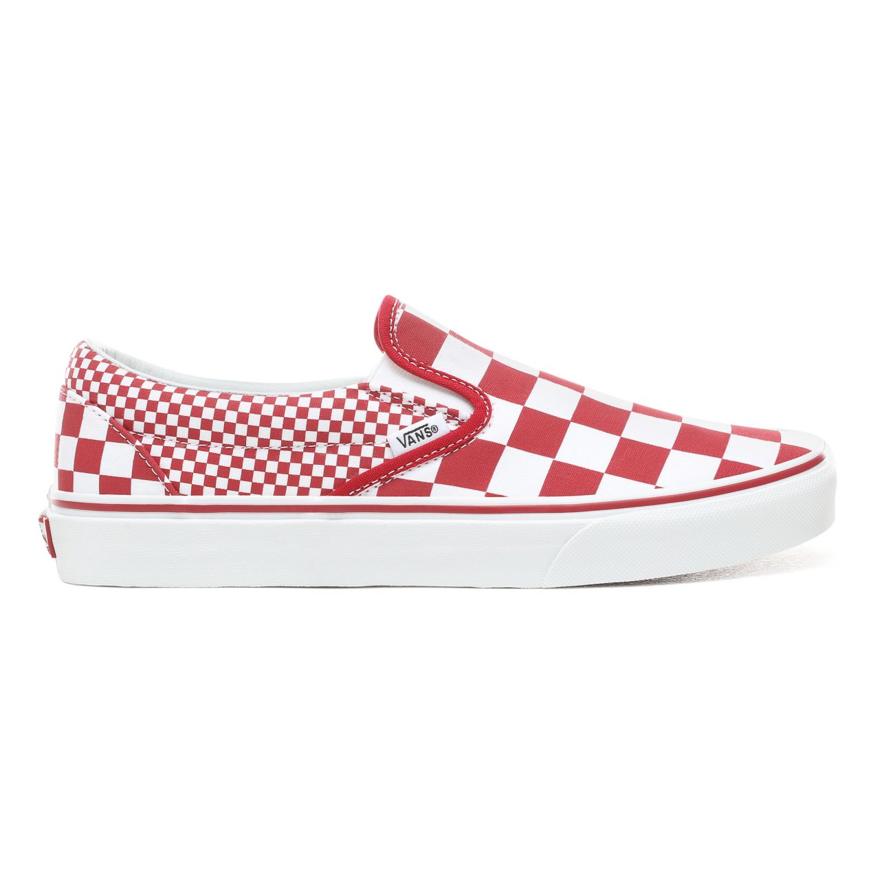 Vans Mix Checker Slip-On Shoes - Mens Womens - (Mix Checker) Chili Pepper/True White VN0A38F7VK5 Sneakers