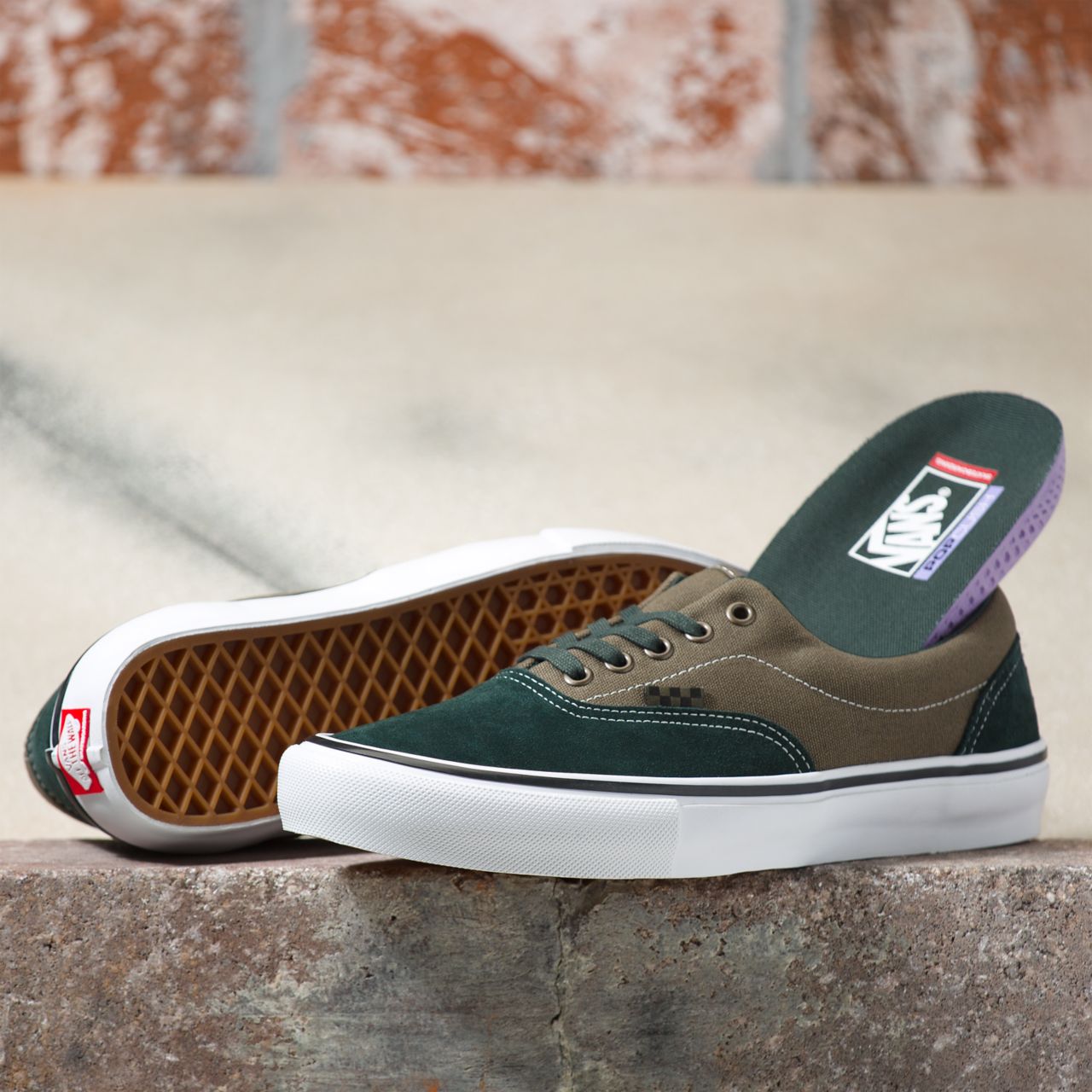 The repositioned DURACAP™ reinforced underlays and fully redesigned uppers, combined with a new two-part foxing tape that features a deeper knurl pattern on the toe, make the new Skate Era durable enough to withstand daily skateboarding abuse. For more board control, the new molded heel counter and internal tongue straps lock in your feet. Even the gum rubber sole that made Vans famous has been elevated with the SICKSTICK™ rubber compound to deliver more grip and boardfeel. Plus, POPCUSH™ energy return sockliners provide superior cushioning and impact protection while helping to lessen leg fatigue for longer skate sessions. Internal heel stiffeners have also been added to provide more support and stability.