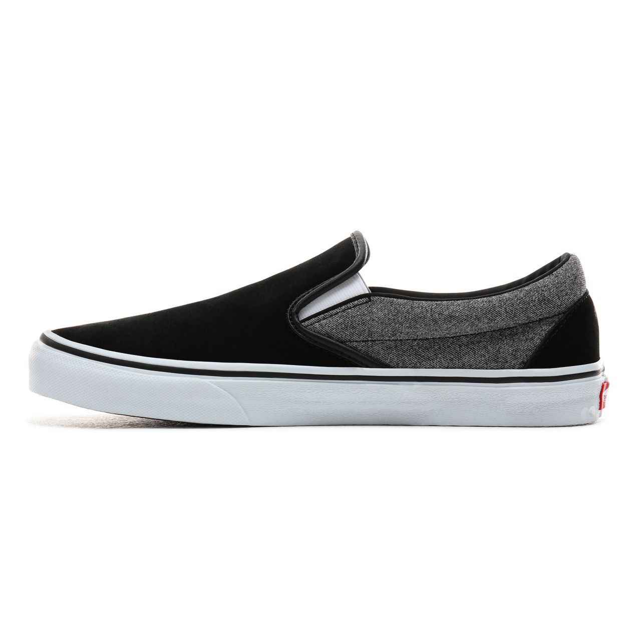 The Suede Classic Slip-On features low profile slip-on suede and textile uppers, padded collars, elastic side accents, and signature rubber waffle outsoles.