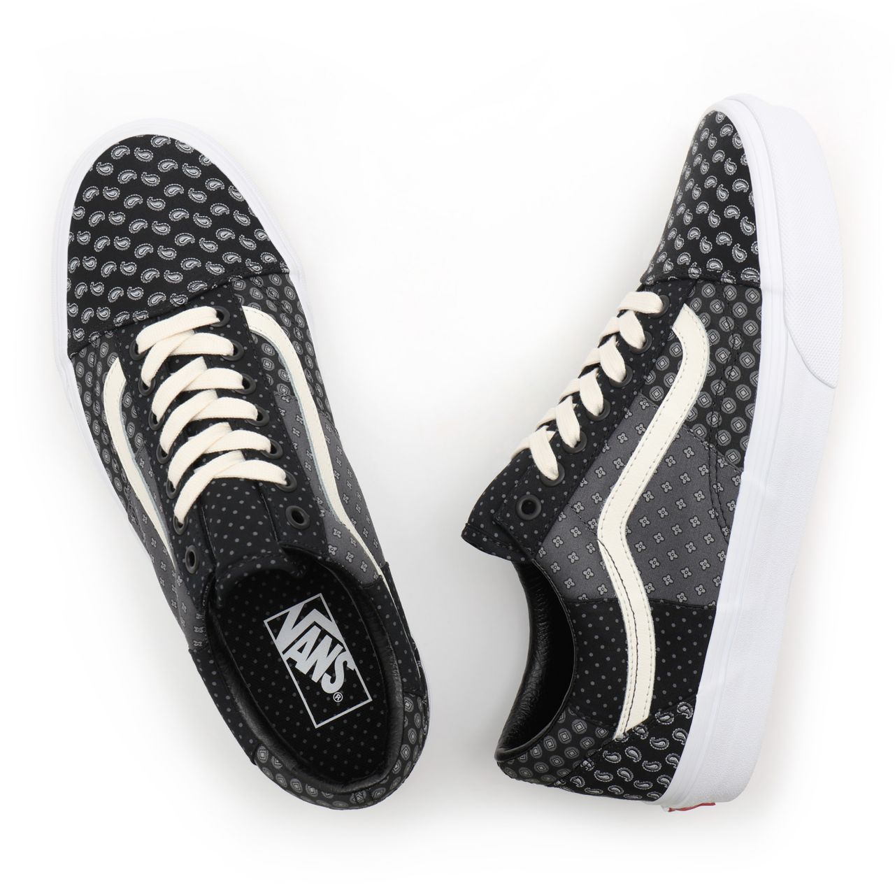 Vans Tie Print Patchwork Old Skool Black Shoes - Mens Womens (Tie Print Patchwork) black/true white VN0A3WKT9XJ Sneakers