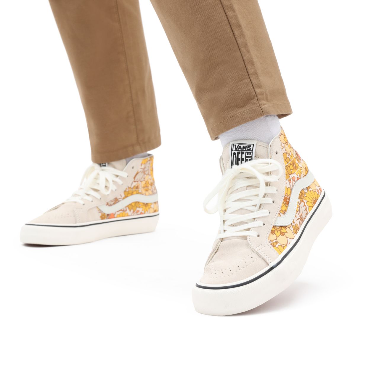 Vans Trippy Floral Sk8-Hi 38 Decon Sf Yellow Shoes - Womens (Trippy Floral) sandshell/marshmallow VN0A4UWNA03 Sneakers